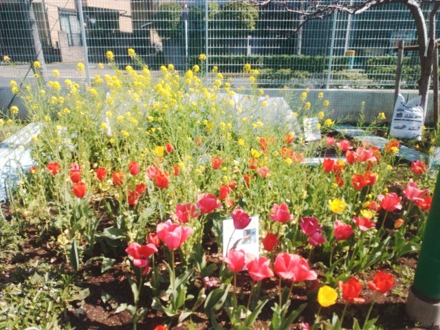 校庭のチューリップや菜の花もきれいに咲いていて1年の始まりを祝福してくれているかのようです。