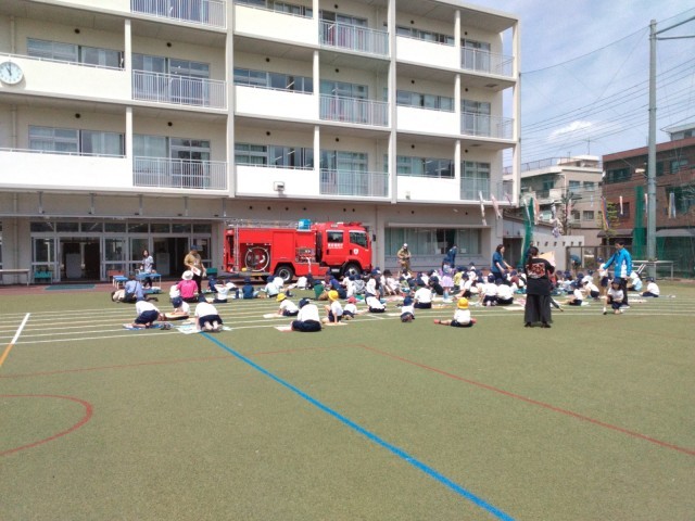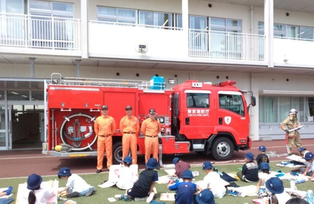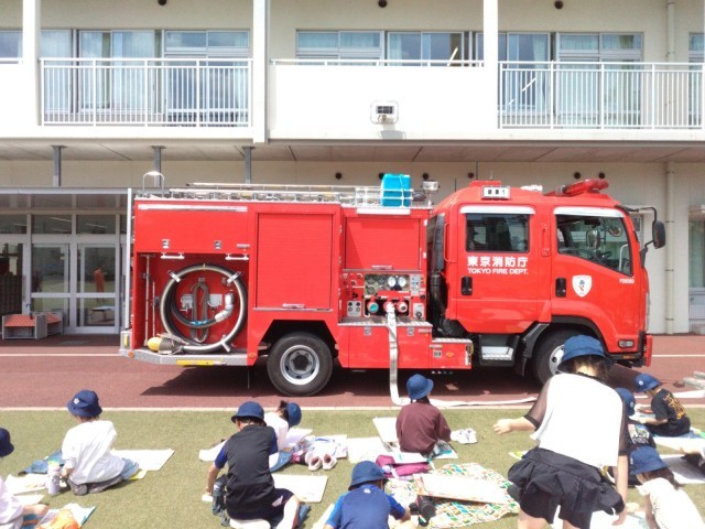 足立消防署綾瀬出張所より消防車一台と消防士の皆様に来ていただきました。