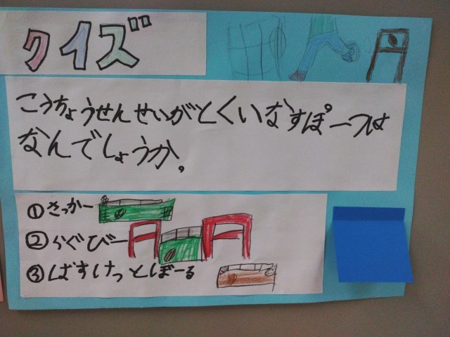写真の2枚目は校長室の説明、3枚目はクイズです。さて何番が正解でしょうか。