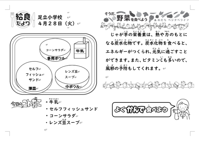 4/28( 火 ) 4月28日(火)の給食