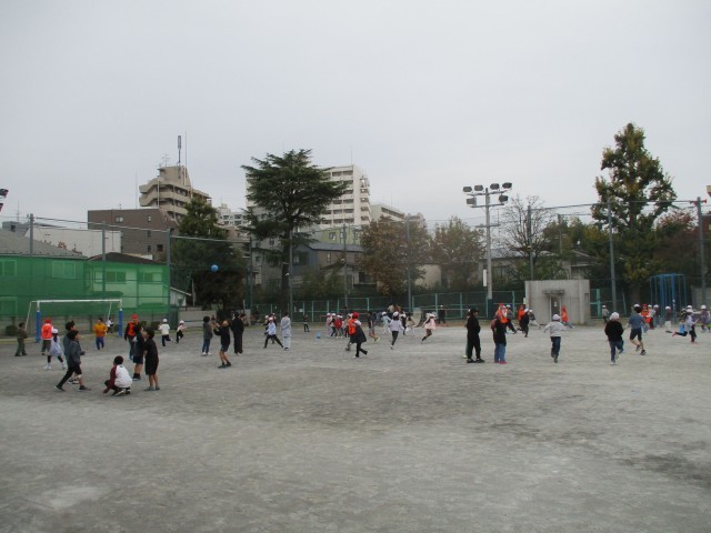 写真では分かりづらいのですが、オレンジ色のビブスを着ている子が代表委員、赤白帽子をかぶっている子が参加者です。