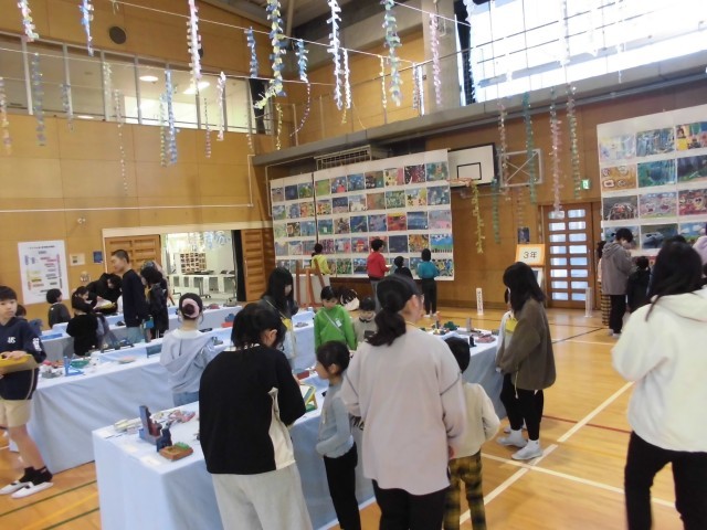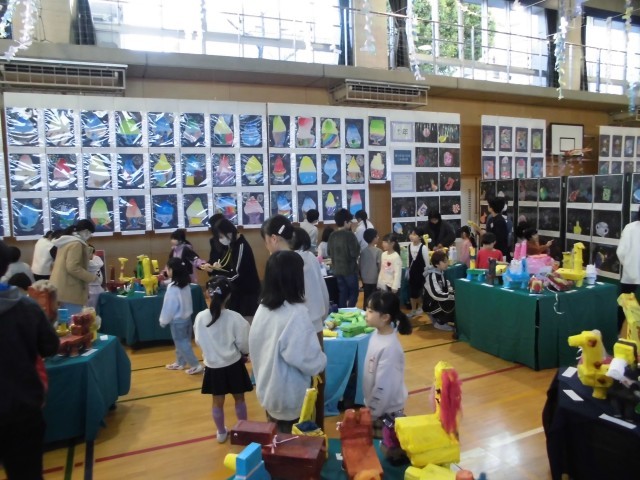 12月8日~始まった展覧会。作品作りにも一生懸命取り組んだ1年生ですが、鑑賞もしっかりとできました。6年生に各学年の見どころを聞き、たてわり班で回りました。自分の作品を紹介したり、素敵な作品を見つけて6年生に鑑賞カードを書いてもらったり、素敵な時間を過ごしました。作品はすでに持ち帰っています。おうちでも飾ってみてください。