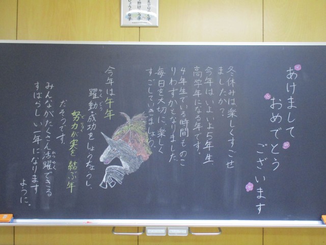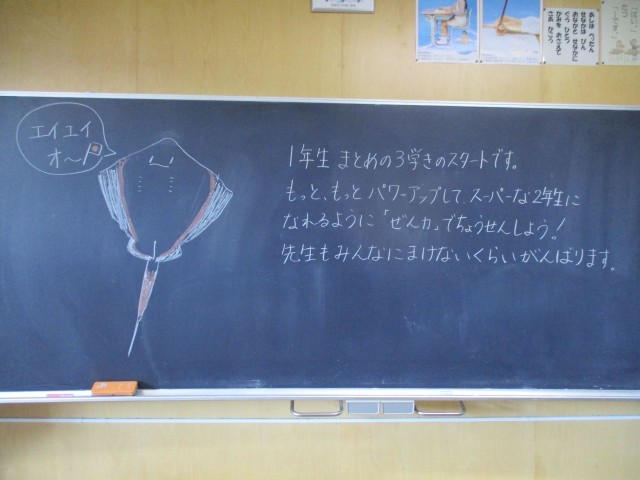 始業前の教室の黒板には、担任からのメッセージが書かれていました。