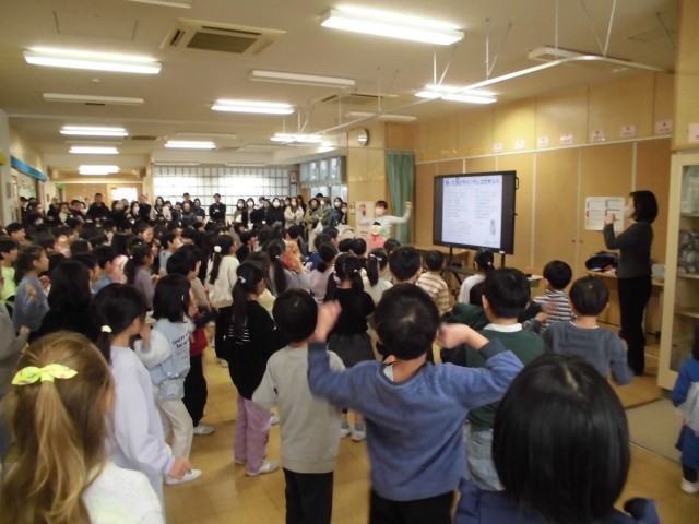 自分たちのおなかの中にある腸の長さを実際に体感したり、バナナうんちの歌を歌いながら踊ったり、あっという間の1時間でした。毎日朝ごはんをしっかり食べて、いいうんちが出せるよう実践していけたらと思います。