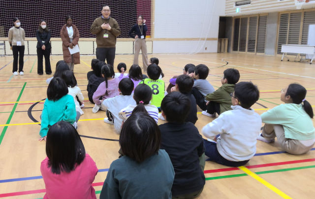 日頃の外国語活動での学びを実際に生かす場として、「イングリッシュキャラバン」が開催されました。フィリピン・ミャンマー・ヨルダン・アメリカから6名の外国の方を富士見丘小学校に迎え、英語を使ったやりとりでグループ活動を行いました。生きた英語に触れながら4つの活動を体験し、英語で「聞く」「話す」のやりとりを楽しみました。