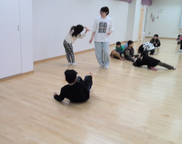 2月21日(土)のえんげき発表会へ向けて、演劇百貨店の田崎葵氏にワークショップをしていただきました。動物になりきってだるまさんがころんだをしたり、ペアやグループでいろいろなものになりきったりしました。これからはじまるえんげきの学習を楽しみに感じた様子でした。