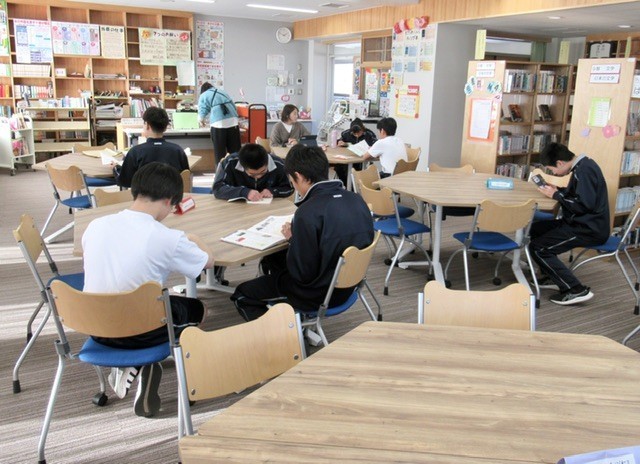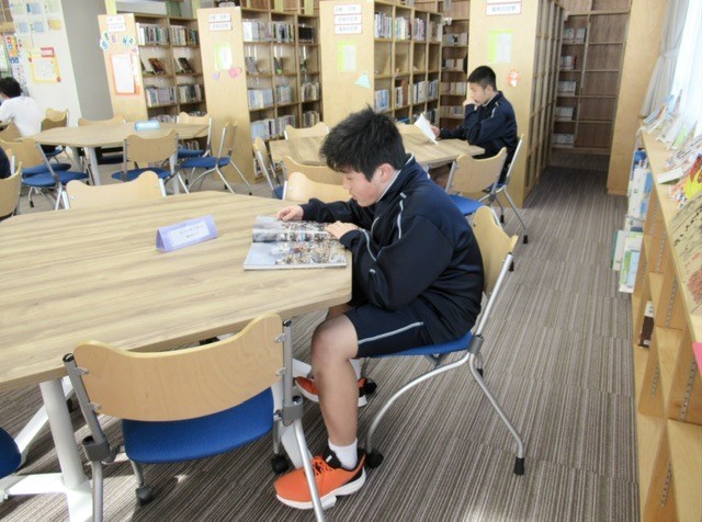 生徒たちは、興味ある本やおもしろそうなタイトルを見つけて、静かに読書に親しんでいました。