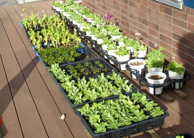 写真:5枚目、校舎横では、ポットに入った苗がすくすくと成長しています。