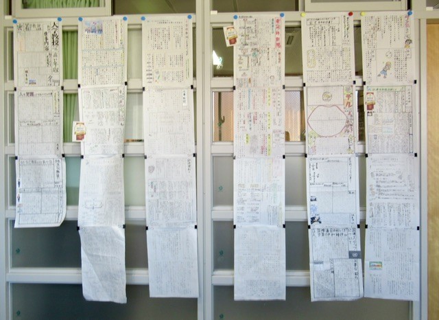 写真は、飛鳥中学校で行われている 「 国語 ・ 書写研究部会 ( 私が所属 ) 」 の様子です。