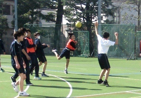 ボールがなかなか回ってこない生徒に意識的にパスを回したり、体の小さい仲間には当てる際に配慮したりするなど、思いやりのある行動がたくさん見られました。