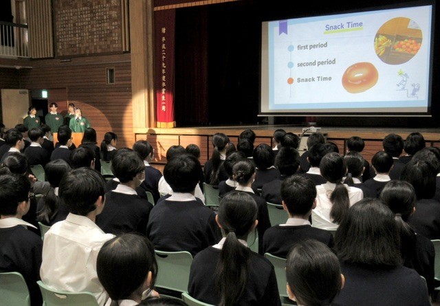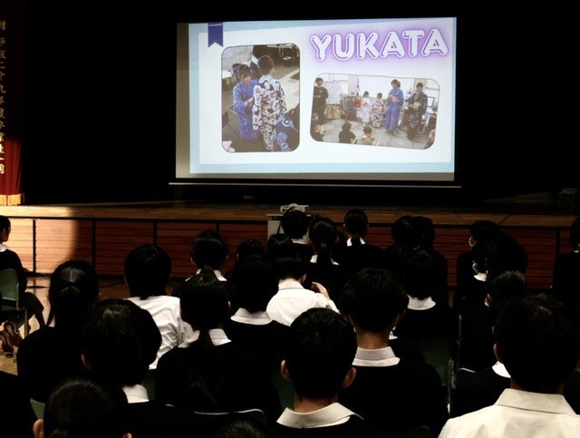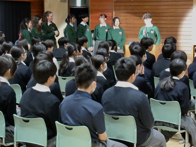 その後、質問タイムやセブンヒルズズクールの生徒からのクイズと、1・2年生全員で交流活動を行いました。