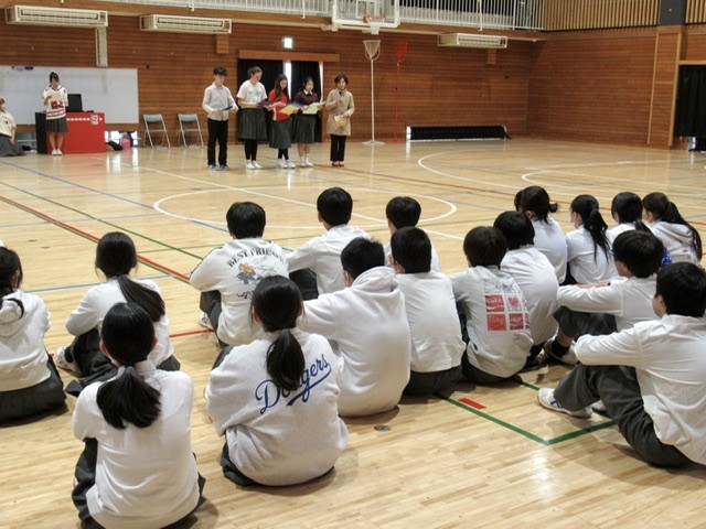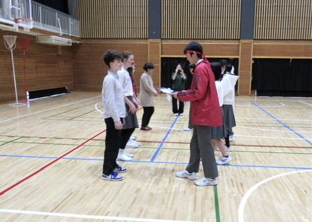 1時間目の 「 歓迎会 」 後、セブンヒルズスクールの生徒たちは、2時間目 : 国語 ・ 3時間目 : 総合 ( レク ) ・ 4時間目 : 社会 の授業に参加しました。5 ・ 6時間目は、2年生全員が体育館に集まり、セブンヒルズスクールの生徒たちと一緒に、レクリエーションの時間を楽しみました。