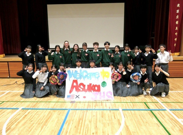 今日は、ホストフレンドとともに飛鳥中に登校し、日本の中学校での生活を1日体験します。 授業はもちろん、給食、清掃活動等も体験します。