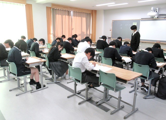 本日は、私立高校の入学試験日のため、半数近くの生徒が受験会場へと向かっています。