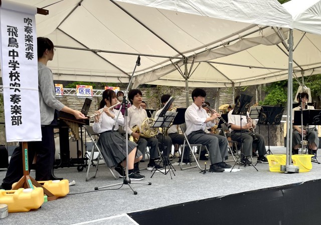 本日午後の部のステージのオープニングは、飛鳥中吹奏楽部による演奏で始まりました。