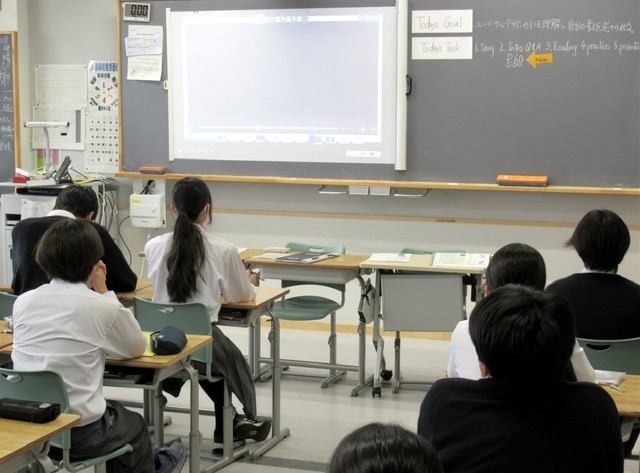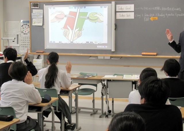 ALTの先生も加わり、ほぼオールイングリッシュで授業が進められています。