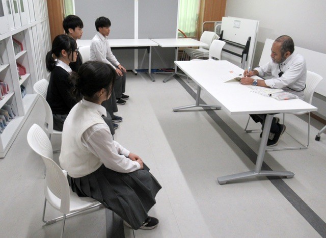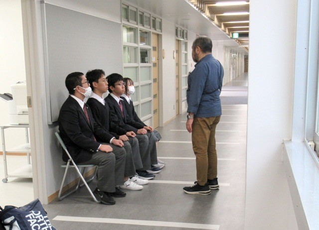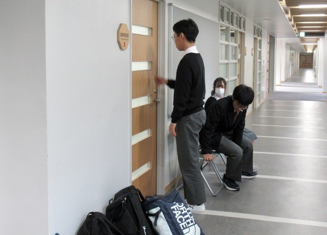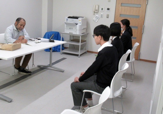 写真 : 1枚目、どのように面接練習をするのか説明を受け、一人ずつ入室していきます。