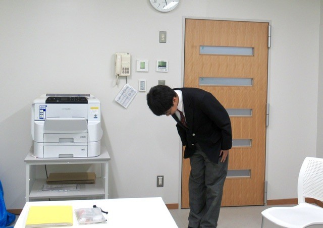写真 : 2・3枚目、ノックは3回、姿勢よく、しっかりとあいさつをして、面接室へ。