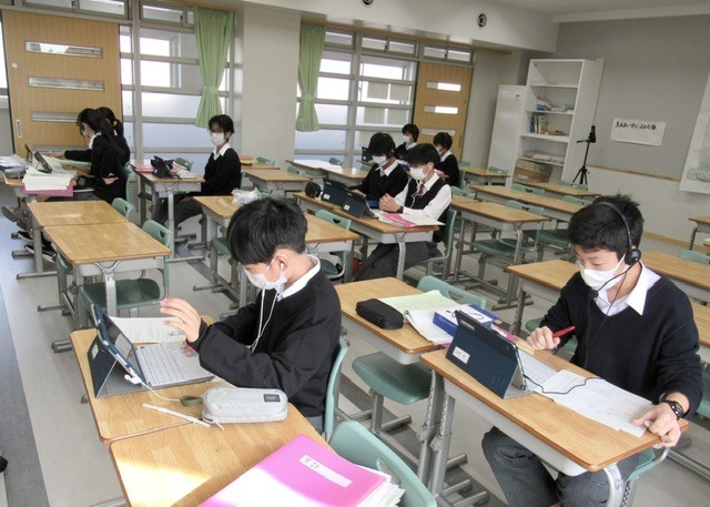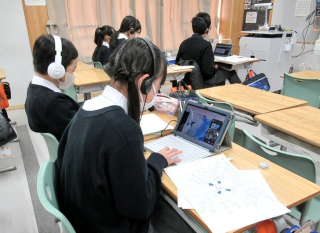 1年生もこうした授業が2回目になり、地理的に離れた福島県の生徒たちとリアルタイムでつながり、英語を通して交流を深めていました。