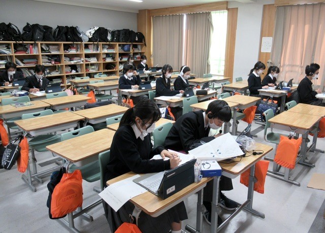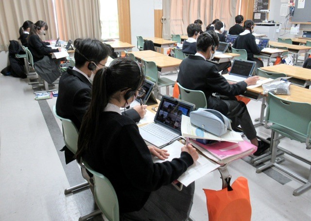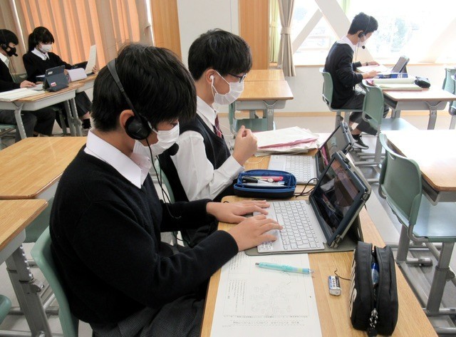 英語の授業では、昨年からこうしたオンラインによる交流授業を取り入れています。