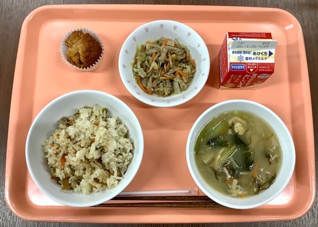 1月13日(火) 本日の学校風景(1) 公開日 2026/01/13 更新日 2026/01/13 学校生活 <今日の献立> 【郷土料理・沖縄】 シシジューシ ・ マーミナーチャンプルー もずくの味噌汁 ・ サーターアンダギー ・ 牛乳