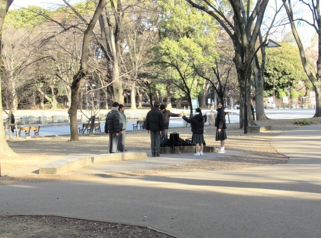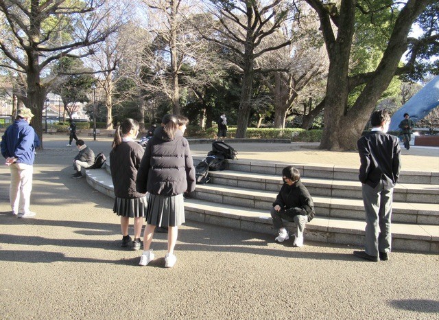 2年生同様、上中里駅での班チェックを終え、上野公園内の国立科学博物館前(野口英世像前)に集合します。