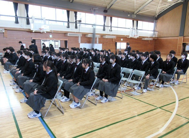 A組からD組まで3年生全員が 「 卒業証書授与 」 の動きを確認していました。
