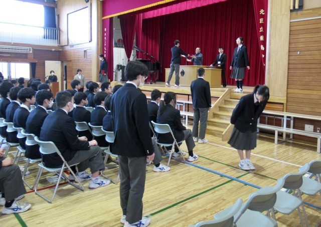 自席から階段下へ移動するタイミング、来賓の方への礼、舞台上の立ち位置、担任の先生の呼名への返事、そして、卒業証書を受け取ります。