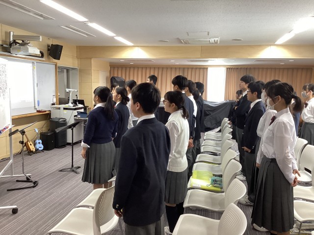 授業では、 「 ブレスをしっかりとること 」 「 言葉の出だしをはっきり発音すること 」 など、具体的なアドバイスが示され、生徒たちはそれらを意識しながら歌っていました。
