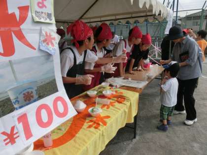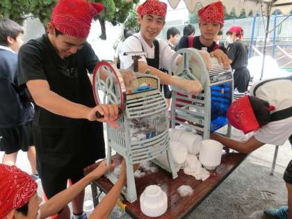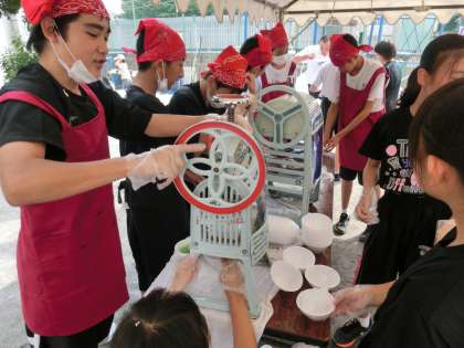 ※例えば、進藤会長ブースのかき氷は、またまた新記録の1000杯以上を売り上げ、完売しました。バスケット部が担当でしたが、受付・作り手・販売など効率化を随分と研究・打ち合わせしていました。実は、途中でかき氷のシロップやカップが無くなり、販売中止の時間もありましたが、それでも1000杯は凄いことです。