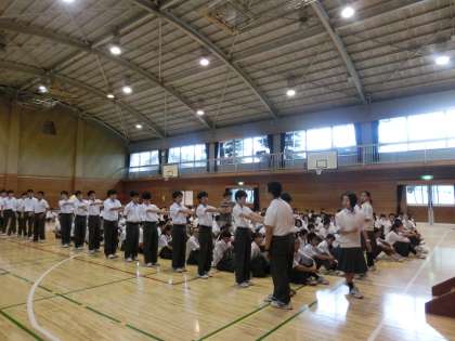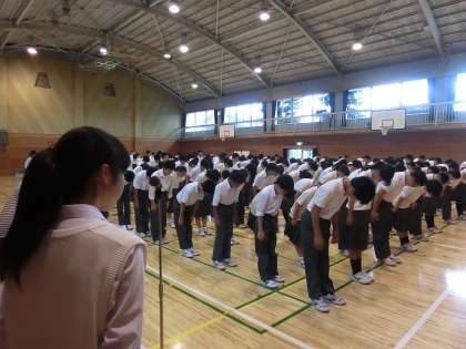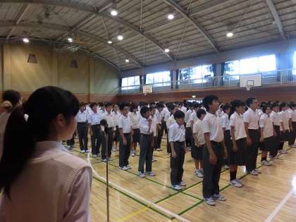 9月7日(月)雨模様ですが、生徒の皆さんは元気に登校!生徒会のアナウンスでいつもキビキビとした爽やかな朝礼です!