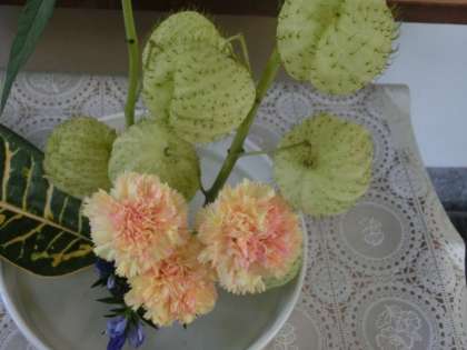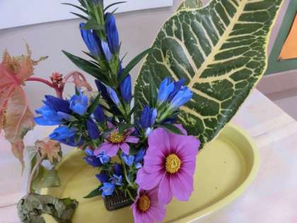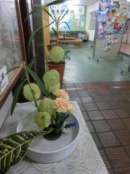 生徒の有志で生け花を生けてくれています。心和むとともに、草木の面白さを味わってみましょう!
