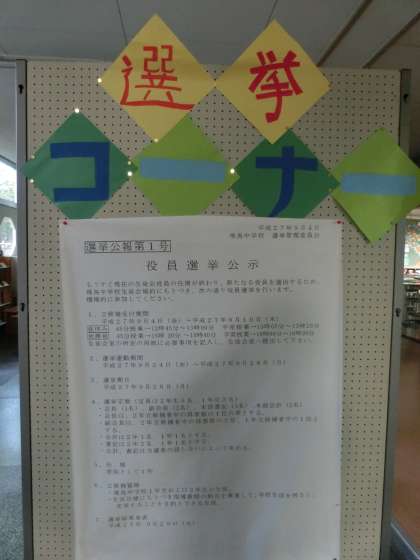 生徒会役員公示 立候補者が出そろい、第2年から生徒会長が選出されます!
