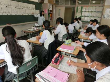※中尾北区教育委員会教育アドバイザーのもと、研究授業です。1年生はかなりノートをとったり、考えたりできるようになりました。(指導は鈴木先生)