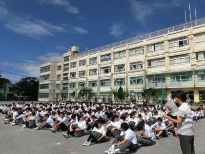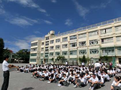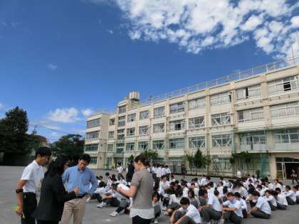 ※3年生は、驚異の1分で整列完了。一部、放送がうまく入らない問題が生じましたが、全体としては、「自分で考え、自分の命は自分で守る」ができていました。(生活指導部避難訓練担当)