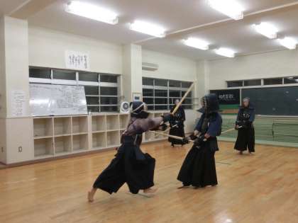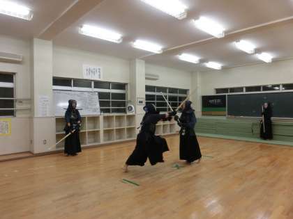 剣道好きな人と聞きましたら、部員全員が手をさっとあげました。人数は少ない剣道部ですが、気合、掛け声と素晴らしい!健闘を祈ります。(顧問は浅賀先生)