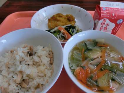 10月8日(木)今日も給食がとても美味しい!秋の香りのきのこご飯!