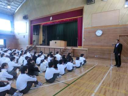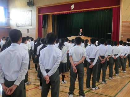 式礼と校歌の練習のあと、終業式。節目として、集中できており、素晴らしい。