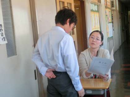 一人一人いろいろな形で面談をされています。成績がすべてではない。どう生かすかが大切です。生徒の皆さんの今後の頑張りを期待します。(北区立飛鳥中学校長 鈴木明雄)