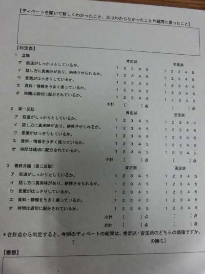 ★ディベイトなので、自分の考えで相手を論破しなければなりません。問題解決的な授業では、話し合い活動等で、自分の考えを深めていきますが、なかなか難しい面もありました。しかしながら、たくさんの資料を集めて、頑張っていました。2年生の凄いのは、終わってから、再び、学校図書館へ出向き、資料集めをしていたところですね。主体的に学ぶ姿勢として素晴らしい!(指導は、社会科駒井先生)