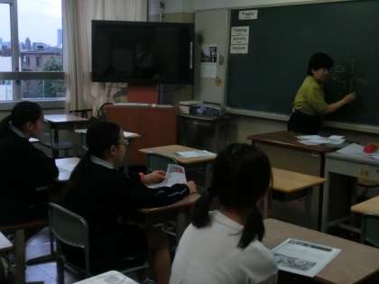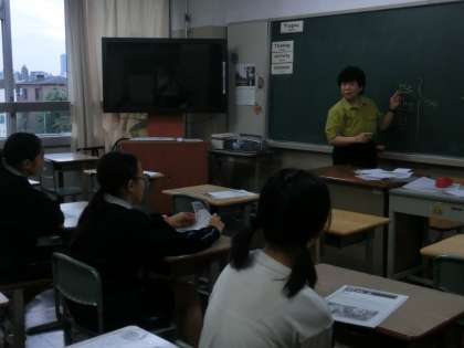 講師は小野先生。英語検定協会や日本女子大学等で教えられています。ボランティアで、飛鳥中学校の生徒のために来ていただいています。