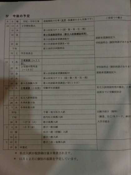 ※詳細は、各3学年担任等にご相談ください。11月4日(水)〜3学年は、進路指導を中心に三者面談が始まります。ご予定ください。