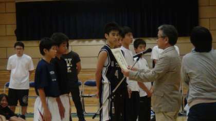 10月18日(日)北区中学校秋季大会(新人戦)飛鳥中学校男子バスケットボール部準優勝!表彰式の写真です!おめでとう!