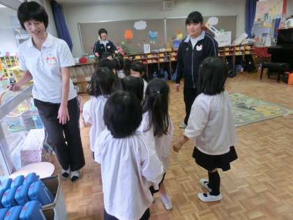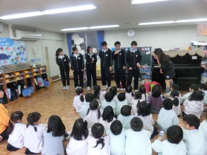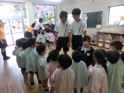 11月9日(月)10日(火)3年生 家庭科保育で島田第一幼稚園で実習!園児にとても喜ばれていました!また、生徒もはじけるような笑顔でした!幼稚園の理事長様・園長様、先生方、誠にありがとうございます。(指導は、家庭科の内久根先生)