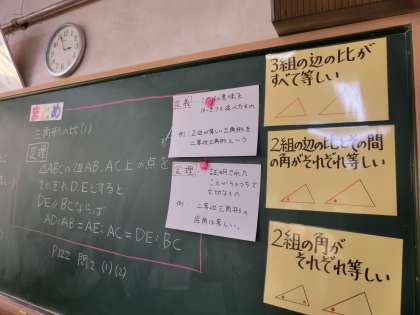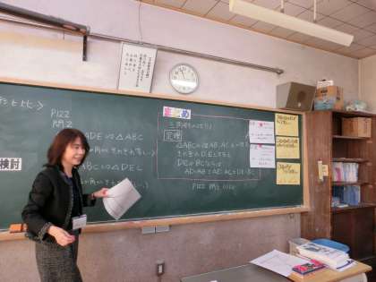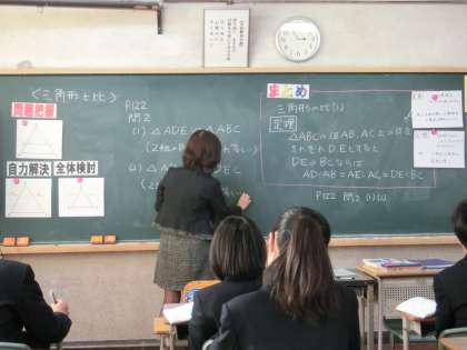飛鳥中の江上先生が数学科(2年生:相似の図形)の問題解決型授業を公開されました。北区立中学校のパワーアップ講師の先生が全員集まり、研究協議をされました。