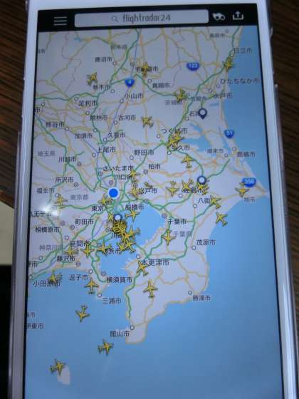 PCやスマホのアプリ Fightradar24 というフリーソフトで、実際の飛行機の位置を知ることができます。また国際成田空港のフライトインフォーメーションでも飛行機の状況を確認することができます。