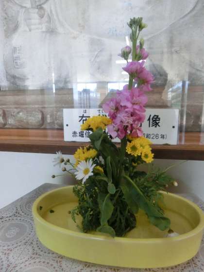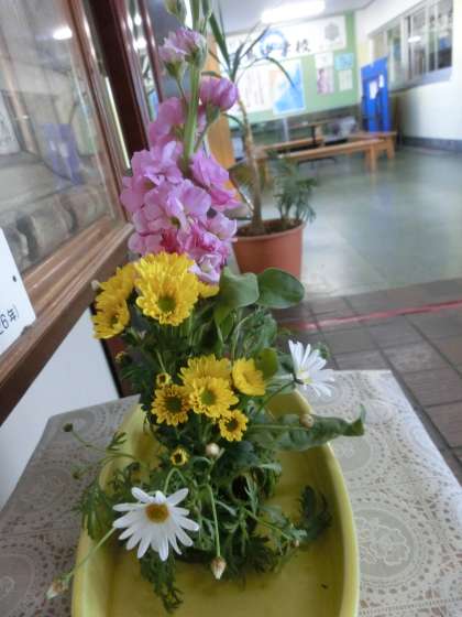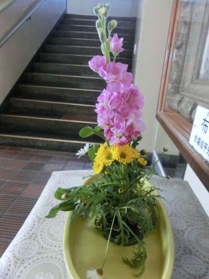 花は、雲竜柳、ストック、マーガレット、赤目柳、アナタスシア、小菊。
