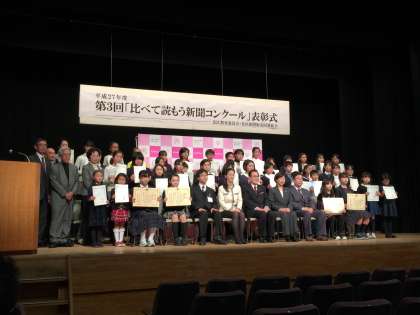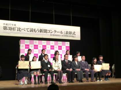 12月21日(月)平成27年度 比べて読もう新聞コンクール 毎日新聞社賞1年水原さん、優秀賞1年茶谷さん、おめでとう!