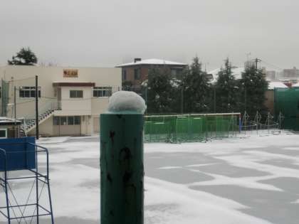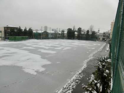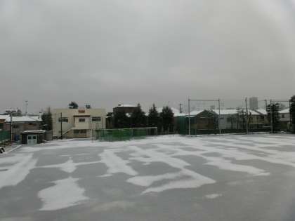 ※校庭も中庭も雪景色です。(北区立飛鳥中学校長 鈴木明雄)