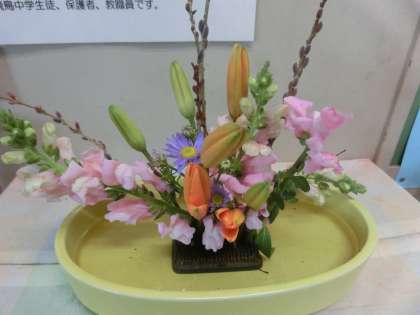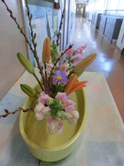 生け花 2年生の生徒さんが生けてくれました。また新しい趣(おもむき)でよいですね!